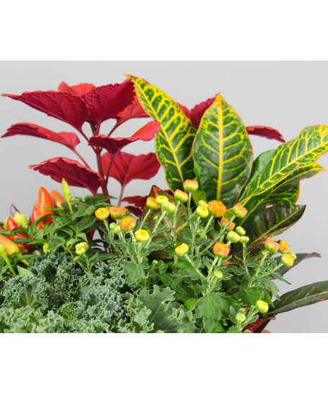 Celebrate the spirit of autumn with this charming ceramic jack-o’-lantern planter, filled with a festive mix of seasonal plants. Bursting with vibrant fall color and texture, it may include mums, ornamental kale, grasses, and trailing ivy for a cheerful, harvest-inspired look. The smiling pumpkin face adds a playful Halloween touch, making it a perfect decoration for porches, patios, or entryways all season long.