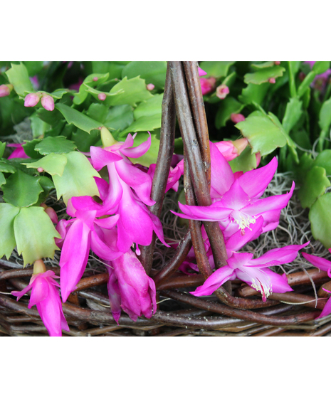 Bring festive joy into your home with the Christmas Cheer Cactus, a stunning large basket brimming with vibrant Christmas Cactus blooms. Known for their striking, colorful flowers that bloom around the holidays, this plant is a symbol of seasonal cheer. Nestled in a charming basket, its rich pink, red, or white blossoms add a pop of color to your décor, while the lush greenery provides a beautiful contrast.
