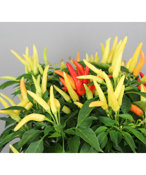 Autumn Spice Ornamental Peppers in a Wooden Pot