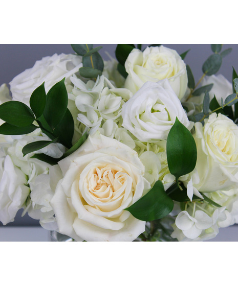 Soft, serene, and beautifully simple — Clouds of White captures the quiet elegance of winter. Designed in a clear 5"x5" glass cylinder vase, this graceful arrangement features lush white hydrangea, delicate white roses, and airy white lisianthus, accented with fresh greenery. Its cloudlike beauty brings a peaceful touch of winter sophistication to any space.