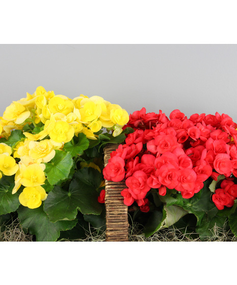 "Rieger Rainbow" presents a stunning assortment of Rieger begonias showcased in a charming canoe basket. Bursting with vibrant colors and lush foliage, this collection captures the beauty of a rainbow in bloom. Each begonia offers its unique charm, from rich hues of red and pink to delicate shades of orange and yellow. The canoe basket adds a rustic touch, enhancing the natural beauty of the begonias. "Rieger Rainbow" is a captivating ensemble that brings joy and brightness to any space, making it a perfect addition to home decor or a thoughtful gift for any occasion.