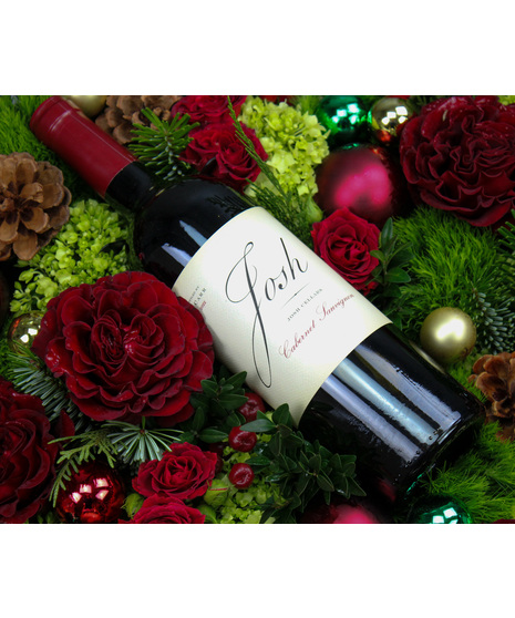 At the heart of the design sits a bottle of wine of your choice, beautifully tucked into the center of the flowers, creating the perfect statement gift for celebrations, dinner hosts, or anyone who deserves something truly special this holiday season.