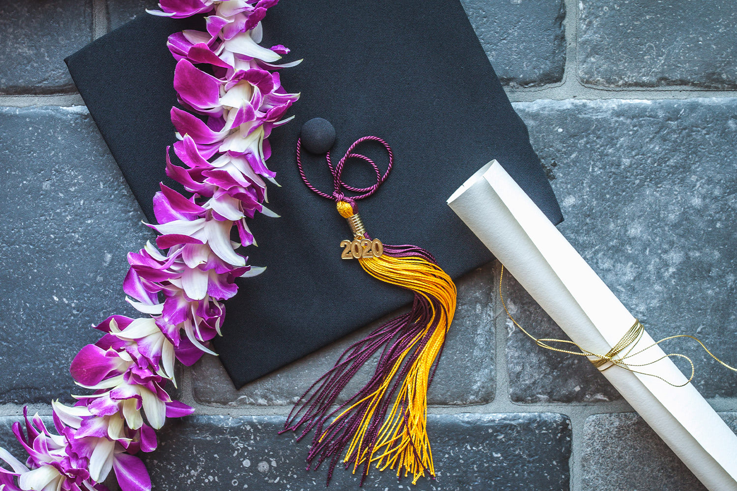 Your graduate might live in an area where it's tradition to wear graduation leis during the ceremony. Often created with purple or white orchids, these leis represent the graduate's departure from one institution, their arrival into the next chapter, and their incredible accomplishments. Giving someone a lei (no matter the occasion) represents friendship, love, respect, honor, and celebration. This graduation tradition is particularly popular in states like Hawaii, California, Washington, and Texas.