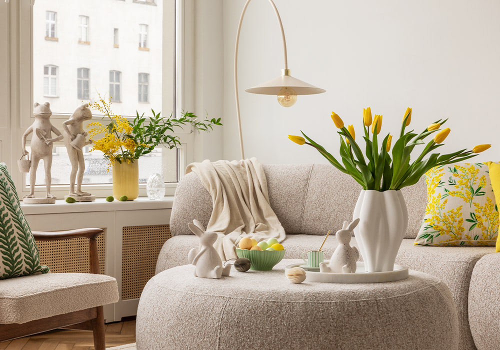 Once dinner is over, guests will also make their way into the living room - perhaps for after-dinner drinks or extended conversations. If you're worried about saving space or decorating a small living area, remember that sometimes, less is more. A few strategically placed bud vases or small bouquets on side tables, bookshelves, or the coffee table can add life and color without overwhelming the room. Creating a welcoming atmosphere with a few seasonal blooms is a subtle way to make your living room feel extra cozy and welcoming to guests.