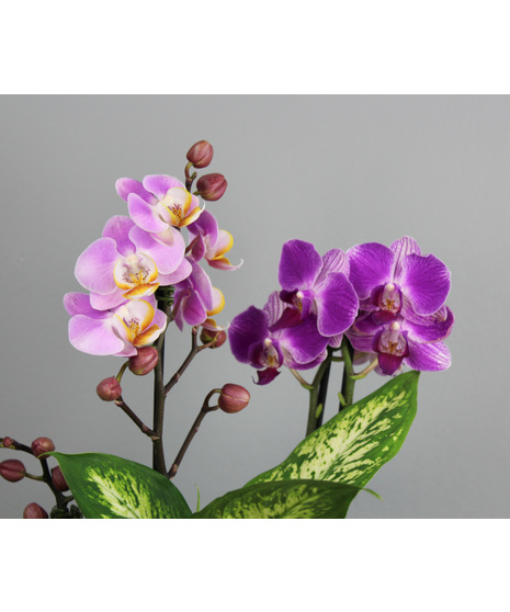 Sweet Violet Orchid Garden is a charming dish garden filled with delicate blooms and lush greenery. Designed in a classic white ceramic dish, this arrangement features assorted mini orchids paired with vibrant African violets, creating a lovely blend of color and texture. A graceful dieffenbachia adds fullness and fresh green contrast, bringing the entire garden together. Perfect for brightening a home or office, Sweet Violet Orchid Garden offers a sweet, serene touch of nature that’s easy to enjoy and endlessly inviting.