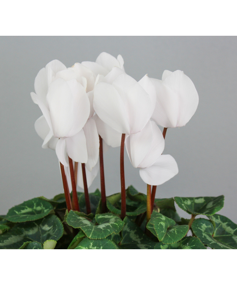 Winter Radiance White Cyclamen in Dark Blue Ceramic Pot