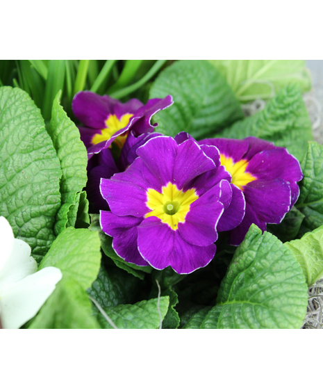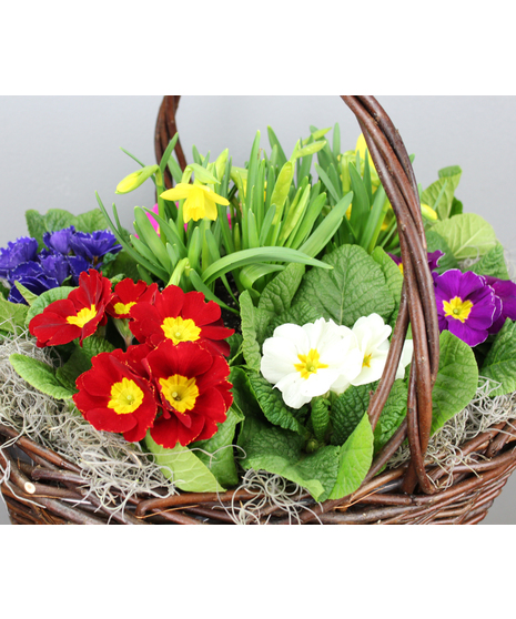 Sunny Garden Basket 6 Primroses in a Basket with a Tete-a-tete
