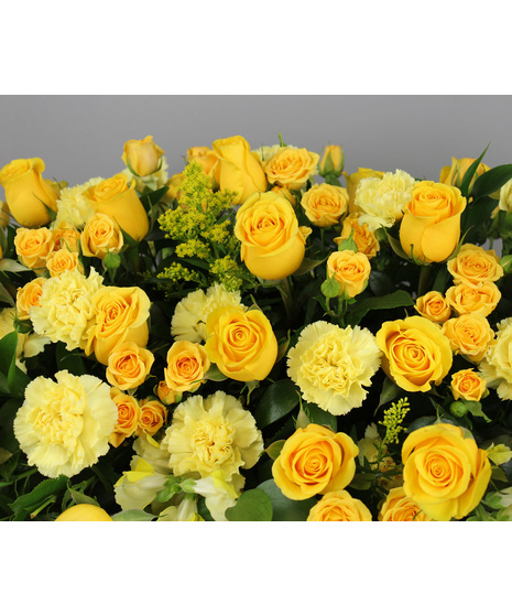 Light of Our Lives is a heartfelt floral tribute honoring someone whose presence brought warmth, love, and brightness to everyone they touched. This elegant casket spray features a lush arrangement of golden yellow roses, soft carnations, and fresh greenery—symbolizing remembrance, gratitude, and the enduring light of cherished memories. Designed in a graceful, flowing style, the sunny hues offer comfort and peace while celebrating a life filled with kindness and meaning. Thoughtfully composed to rest beautifully atop the casket, this arrangement serves as a loving expression of honor, respect, and everlasting love. A meaningful farewell for someone who will forever remain the Light of Our Lives