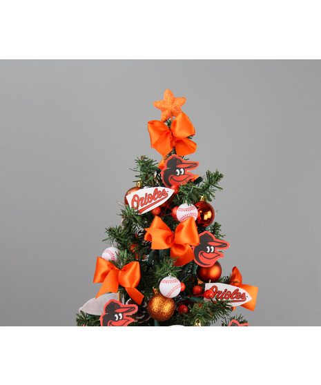 The Big Hit is a festive and sporty silk Christmas tree designed for Baltimore Orioles fans. Adorned with vibrant orange Christmas balls, matching bows, Orioles logos, and playful baseball-themed ornaments, this tree celebrates the spirit of the game in full holiday cheer. Topped with a sparkling orange glittered star and displayed in a charming white-washed wooden box, it’s the perfect centerpiece for any baseball-loving home during the holidays.